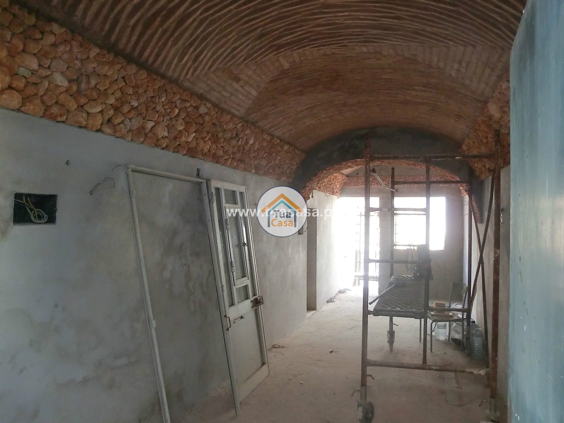 Cette maison a comme particularité que le couloir a un plafond en pierre naturelle.